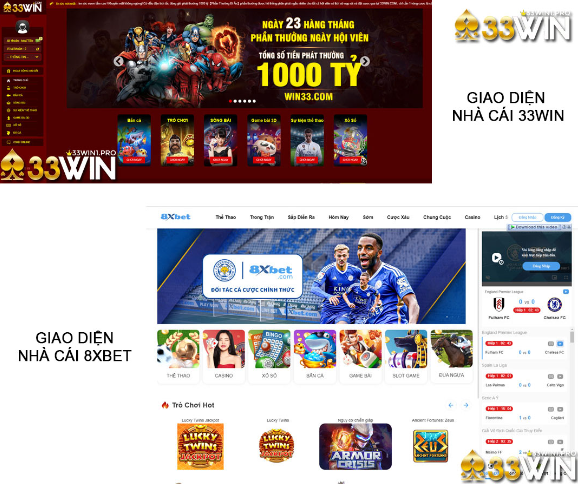 Giao diện nhà cái 8xbet và giao diện nhà cái 33Win