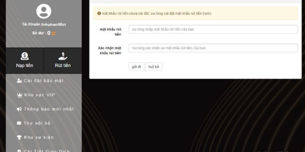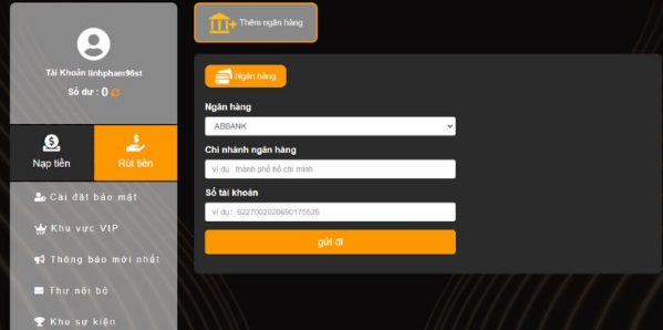 Vượt qua mọi vòng chơi hấp dẫn, thu về một số tiền lớn. Hội viên tiến hành nhập lệnh rút tiền về. Tiến hành cung cấp đầy đủ thông tin để nhận về tài khoản cá nhân.