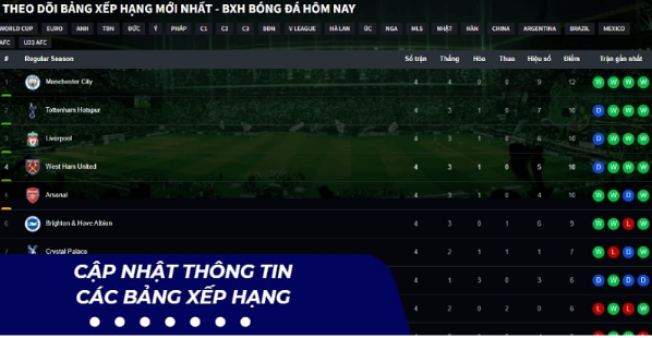 Đối với khán giả có nhu cầu xem bảng xếp hạng của các câu lạc bộ và đội tuyển quốc gia tại các giải đấu hàng đầu trên thế giới,
