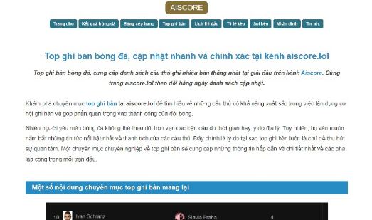 Nhận thấy được điều này, chuyên gia bóng đá đã tiến hành nghiên cứu cho ra mắt Aiscore. Website không chỉ mang đến cho khán giả tỷ số trực tiếp theo thời gian thực, soi kèo chuẩn mà còn tổng hợp đầy đủ về bảng xếp hạng, kèo nhà cái, nhận định, top ghi bàn hay tin tức hot bên lề.