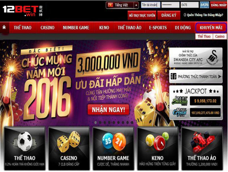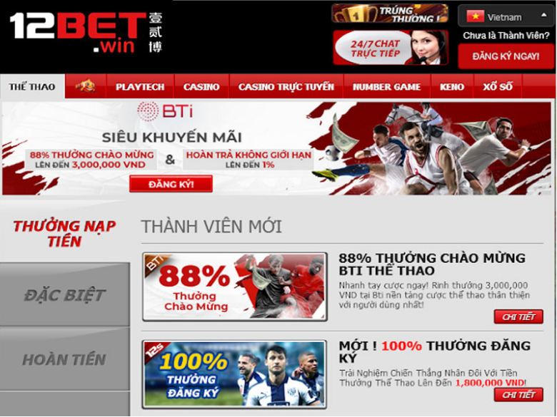 Nhà cái 12bet thường xuyên áp dụng các chương trình khuyến mãi hấp dẫn chào mừng thành viên mới với mỗi lần gửi tiền.