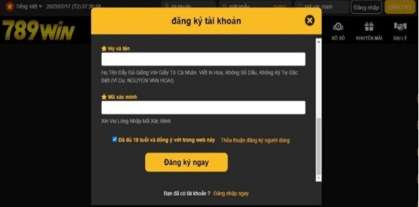 Bước 2: Đăng ký tài khoản thành viên với sòng bài 789Win