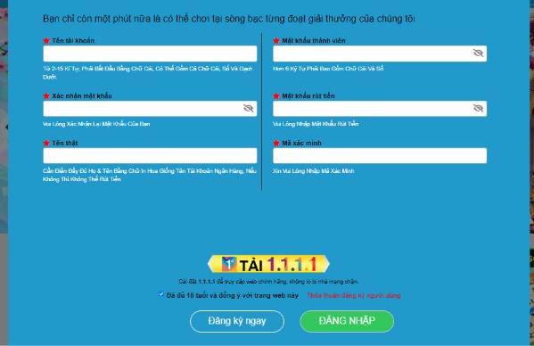 • Tên đăng nhập: Người chơi thiết lập tên đăng nhập dễ nhớ, không trùng lặp với tên của thành viên khác.