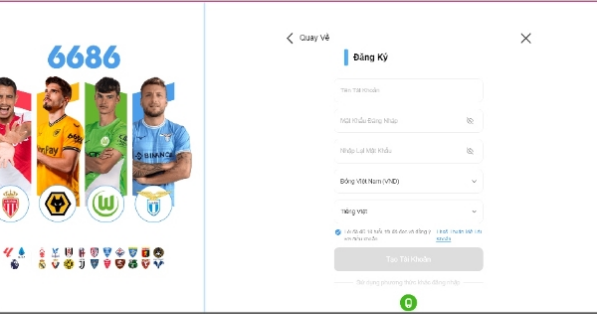 Trên trang chính của 6686, bạn sẽ thấy một nút hoặc liên kết để đăng ký tài khoản. Nhấp vào đó để bắt đầu quá trình đăng ký.Điền các thông tin cá nhân cần thiết vào biểu mẫu đăng ký, bao gồm tên đầy đủ, địa chỉ email, số điện thoại, ngày sinh và địa chỉ cư trú. Hãy chắc chắn rằng các thông tin bạn nhập là chính xác và đầy đủ.