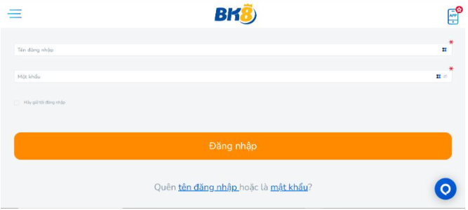 • BK8 đăng nhập trên giao diện ứng dụng điện thoại