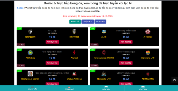 Xôi Lạc TV đều là những trận đấu hấp dẫn từ các giải đấu trên khắp thế giới. Với sự đa dạng về quy mô, trang web này đáp ứng đầy đủ nhu cầu