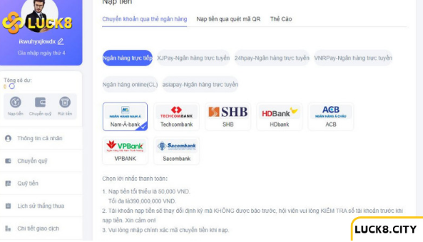 tham gia Luck8 luôn cam kết thời gian giao dịch được tiếp nhận, xử lý cực kỳ nhanh chóng. Khi người chơi muốn gửi tiền chỉ mất vài phút sẽ nhận thông báo về tài khoản.