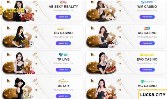 Cá cược Luck8 sở hữu kho game khổng lồ với đa dạng loại hình để anh thỏa thích chọn lựa. Đến đây người chơi có thể xuống tiền bất cứ thể loại nào, thư giãn sau áp lực mệt mỏi. Chẳng hạn như xổ số, đá gà, Casino, game bài, slot game, thể thao….