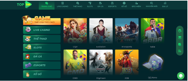 nhà cái Top789. Đội ngũ xây dựng và thiết kế với gam màu xanh trầm ấm nhưng vô cùng độc đáo. Hơn thế nữa các chuyên mục được sắp xếp một cách khoa học và logic giúp cho người chơi mới dễ dàng thao tác và chọn lựa trò chơi mình yêu thích.