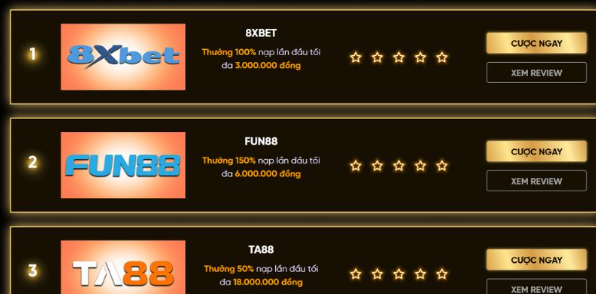 là trang web tổng hợp thông tin và đưa ra các đánh giá chân thực về các nhà cái uy tín đang có mặt tại thị trường Việt Nam. Chính vì thế, đây là trang web quen thuộc đối với các bet thủ mỗi khi tìm kiếm một địa chỉ cá cược uy tín. Chi tiết về website sẽ được giới thiệu trong bài viết này. Khám phá ngay.