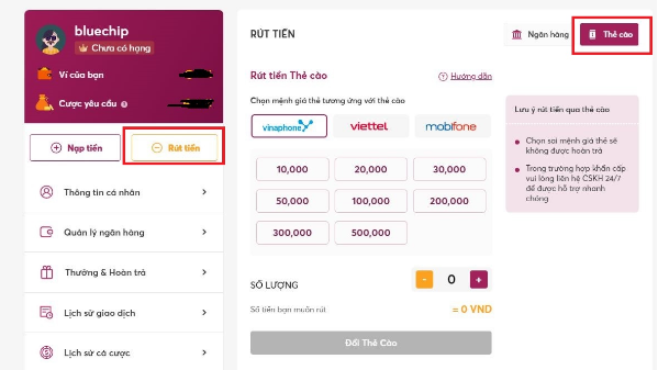 Dù là rút tiền qua đổi thẻ cào hay rút tiền về tài khoản anh em cũng lưu ý những điều sau:
