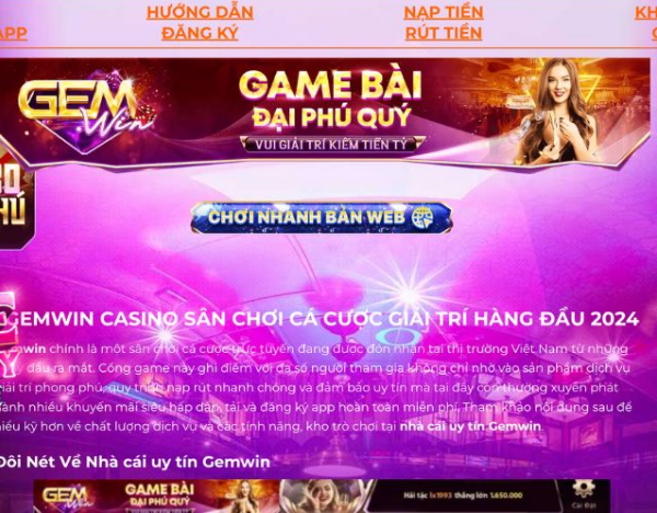Gemwin là một địa điểm cá cược trực tuyến đang thu hút sự quan tâm tại thị trường Việt Nam. Gemwin cung cấp một loạt các sản phẩm giải trí, bao gồm cá cược thể thao, casino trực tuyến, xổ số và nhiều trò chơi khác. Sự đa dạng này mang lại lựa chọn phong phú cho người chơi. Dưới đây là một số đặc điểm khi