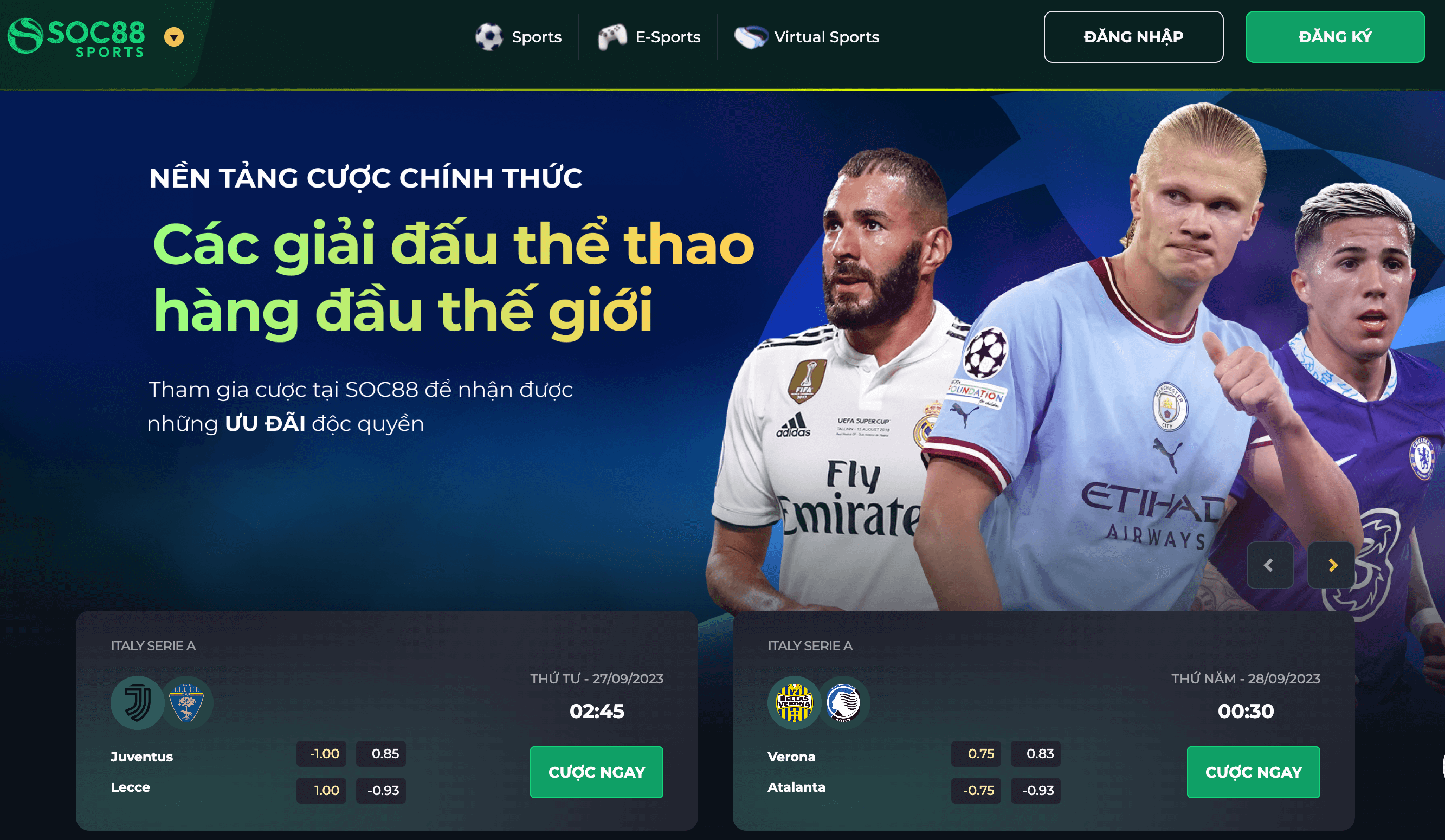 SOC88 cung cấp cho người chơi các giải đấu thể thao lớn như: