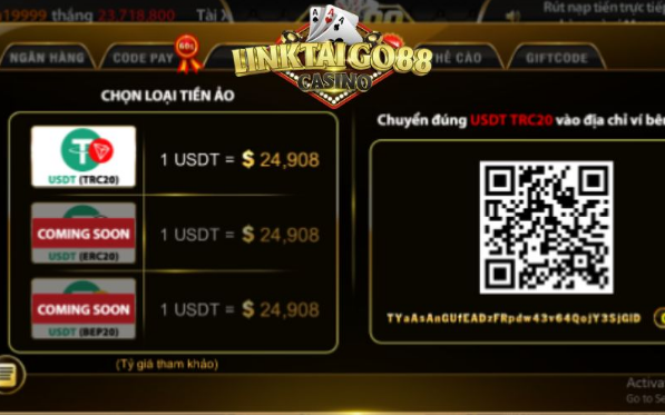 Nạp tiền vào go88 bằng hình thức tiền ảo