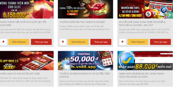 Đặc biệt, đối với các thành viên mới thì VN88 cũng mang đến những chương trình khuyến mãi cực kỳ hấp dẫn. Theo đó, nhà cái hiện đang cung cấp ưu đãi tặng 50K ngay sau khi tải ứng dụng và thực hiện thành công giao dịch quan smartphone. Đồng thời, nhà cái tặng 88k dành cho các tài khoản đã xác minh thông tin.