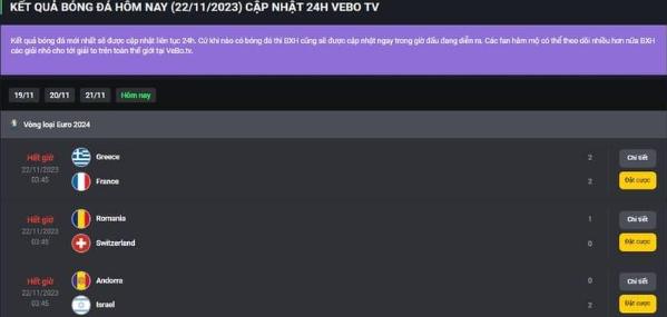 Trực tiếp kết quả bóng đá mới nhất tại Vebo TV để bạn theo dõi