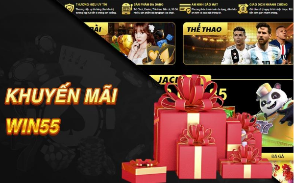 Win55 nhận 99k: Đăng ký tài khoản mới tại Win55 và hoàn thành xác minh thông tin, người chơi sẽ nhận được 99k miễn phí để tham gia các trò chơi.Win55 nhận 55k: Nạp tiền lần đầu với số tiền tối thiểu là 100k, người chơi sẽ nhận được thêm 55k vào tài khoản.Các chương trình khuyến mãi thường xuyên: Các chương trình khuyến mãi thường xuyên như hoàn trả tiền thua, tặng thưởng cho người giới thiệu, giải đấu thể thao với giải thưởng lớn...