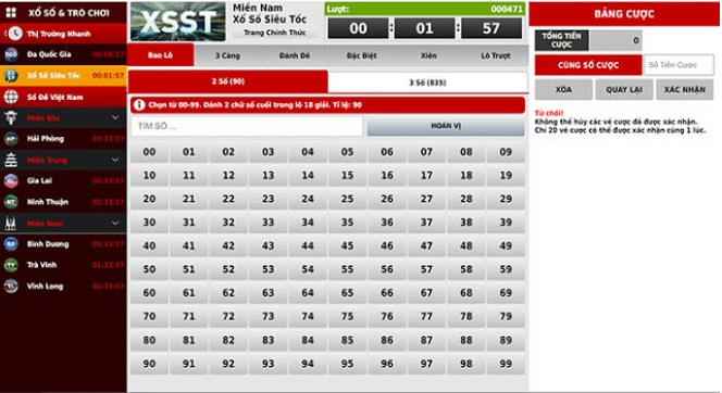 Giao diện đặt cược xổ số tại nhà cái Bk8