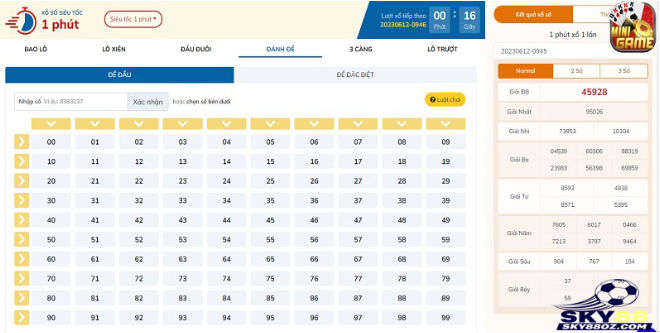xổ số Sky88 còn mang đến cho hội viên sản phẩm lô đề siêu tốc thú vị. Thay vì phải chờ đợi các nhà đài quay thưởng theo cung giờ cố định trong ngày, xổ số siêu tốc được cập nhật kết quả liên tục dựa vào hình thức chơi 1 phút, 3 phút, 5 phút. Kết quả đảm bảo tính công bằng, được giám sát từ bên thứ 3, cam kết không có gian lận.