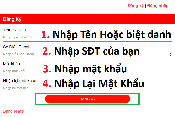 Lưu ý : nhập đầy đủ 4 thông tin .